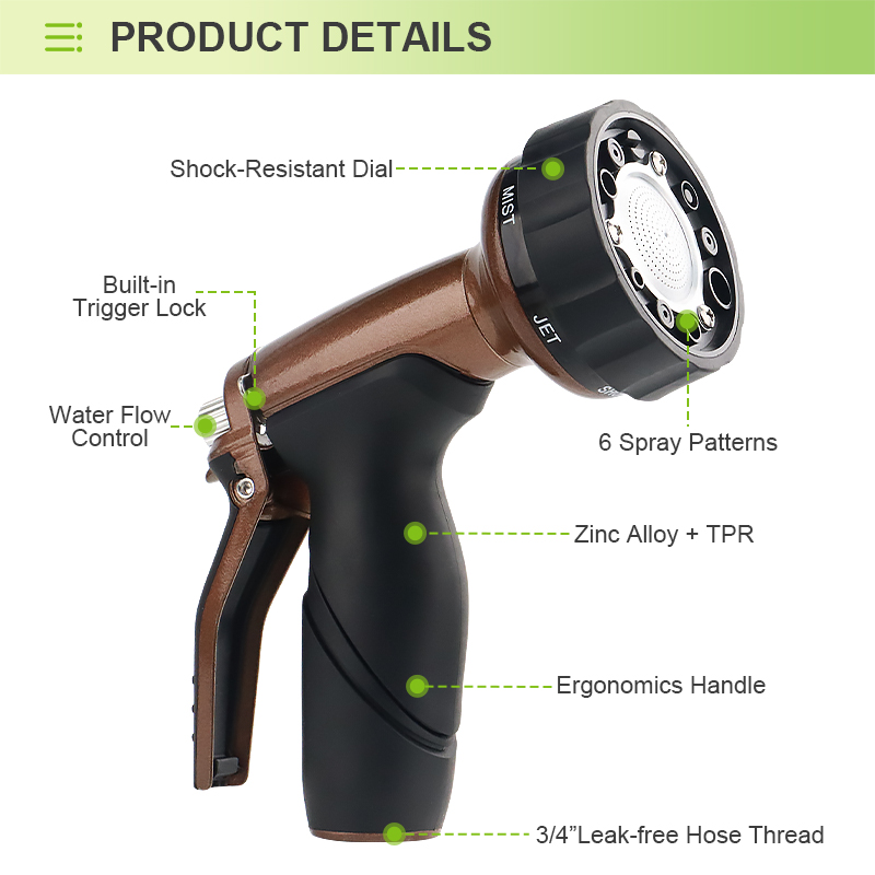 Spray Modes: Soaker, cone, jet, and rinse